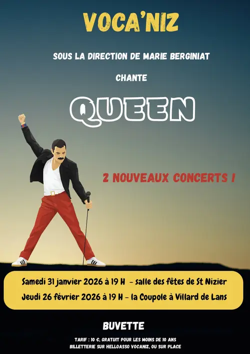 Du31au31jan.2026 Voca'Niz chante Queen Voca'Niz interprétera Queen pour deux nouvelles représentations. Réservation vivement conseillée …